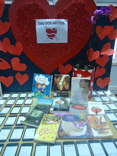 Enriquecemos a montra com as mensagens dos alunos, da qual já faziam parte livros que contam grandes histórias de amor.