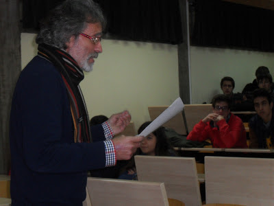 a ler, apresentando textos do dramaturgo Karl Valentin a 8 turmas da