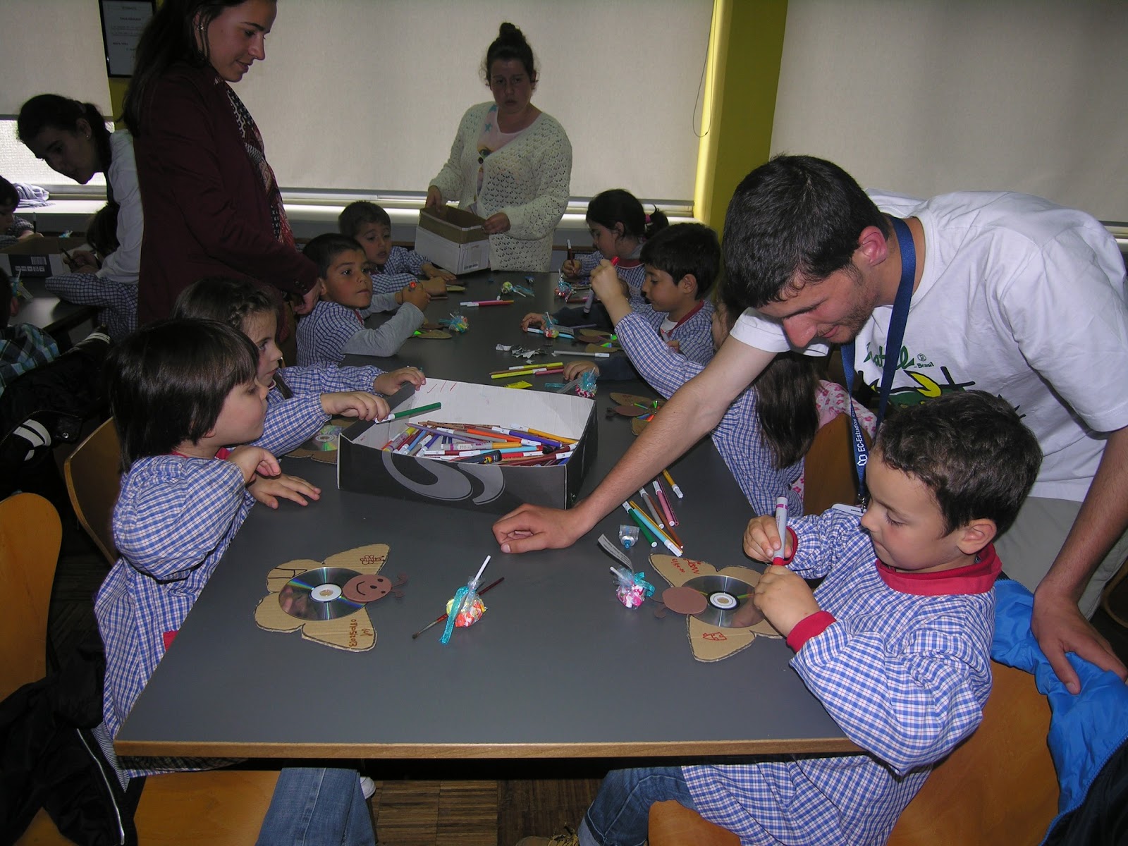 Coube ao 12.º O abrir as atividades, ao som da guitarra do Diogo, com músicas infantis, que prosseguiram, na senda da educação para a cidadania, com atividades de expressão plástica.