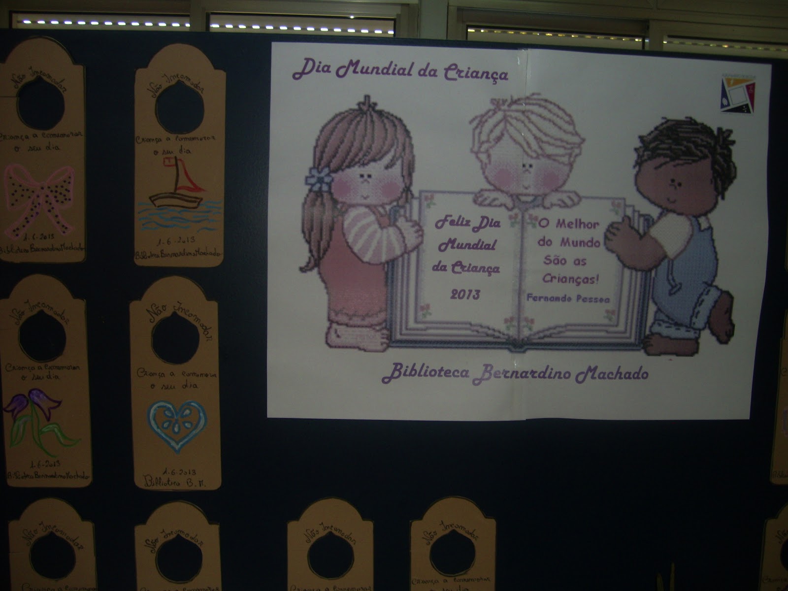 Para assinalar o Dia Mundial da Criança, a Biblioteca Bernardino Machado promoveu um conjunto de atividades, tais como a visualização de PowerPoint e ateliês de pintura e desenho. Os alunos fizeram e decoraram placas de portas, nas quais deixaram bem claro que não queriam ser incomodadas, porque estavam a comemorar o seu dia.